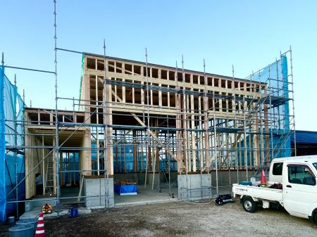 昨日、扶桑町の自動車修理工場の建て方をおこないました。